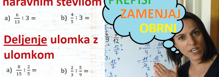 https://youtu.be/xERTicjJl5Y V tem videu je na kratko predstavljane deljenje ulomka z naravnim številom in deljenje ulomka z ulomkom. Slogan, ki si ga velja zapomniti 😉 Rešili bomo primere: Da boste lažje sledili in se tako tudi več naučili, sem vam pripravila delovni list, ki si ga lahko prenesete, natisnete in izpolnite. Prenesi delovni list: Deljenje… Continue reading Deljenje ulomka z naravnim številom in z ulomkom
